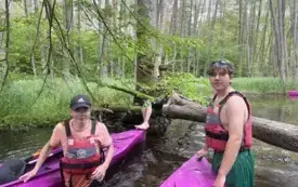 Dopisała piękna pogoda, a dobra atmosfera towarzyszyła nam przez cały dzień. Pokonaliśmy około 10 kilometrów spokojnym nurtem rzeki, choć po drodze musieliśmy zmierzyć się z kilkoma przeszkodami w postaci zwalonych drzew. Stanowiły one ciekawe urozmaicenie trasy i dodały spływowi nuty przygody.